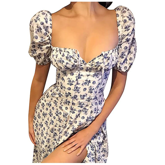 Floral Lantern Sleeve Dress