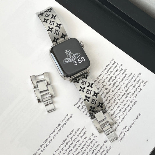 Premium Stainless Steel Floral-Pattern Link Watch Band – Gold or Silver