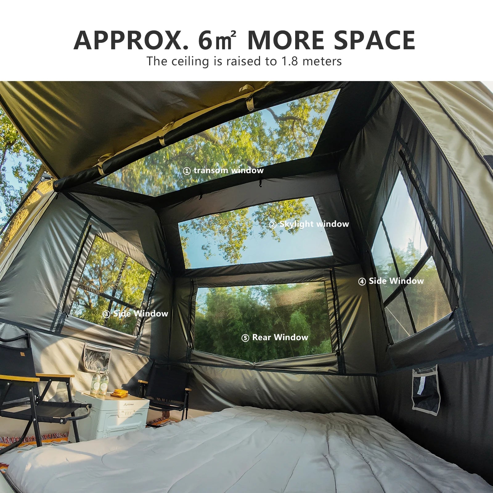 A spacious and durable ridge-style camping tent designed for quick setup with an automatic opening system. Made from Oxford fabric with titanium coating, it offers excellent waterproofing, sun protection, and reliable shelter for family or group camping trips.