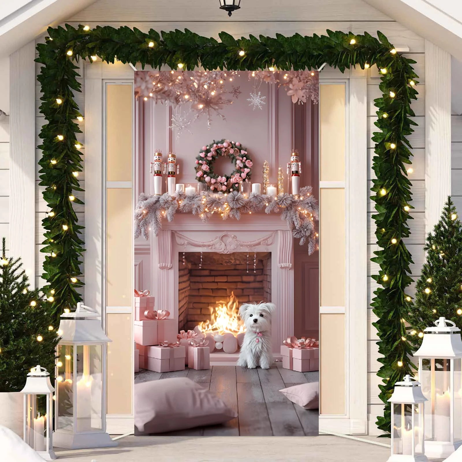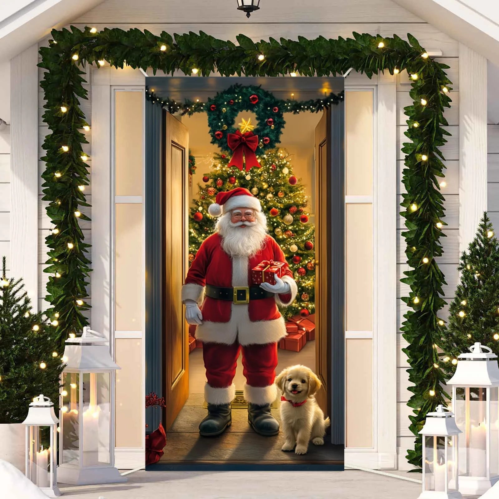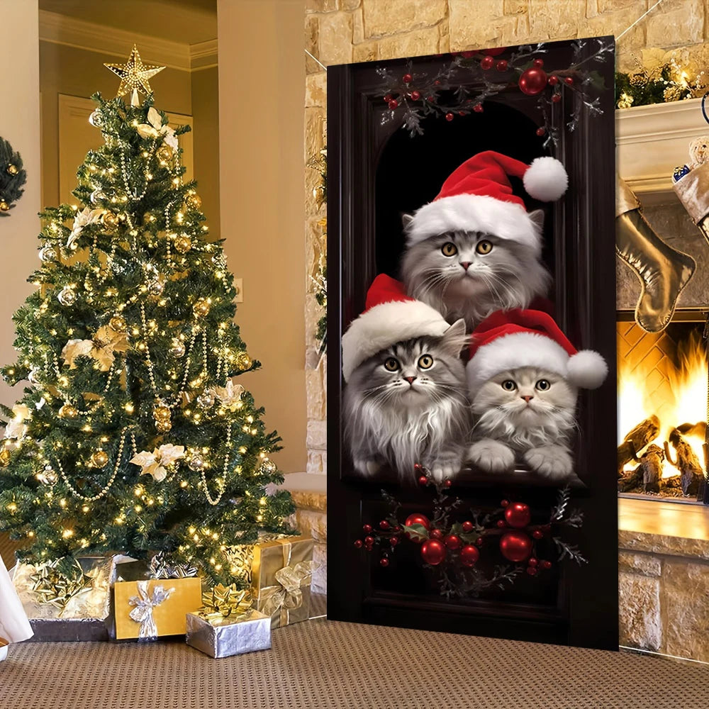 Decorate your entryway with this adorable door cover featuring festive animals like dogs, cats, snowmen, and gingerbread men. Perfect for creating a warm holiday atmosphere during Christmas and New Year celebrations.