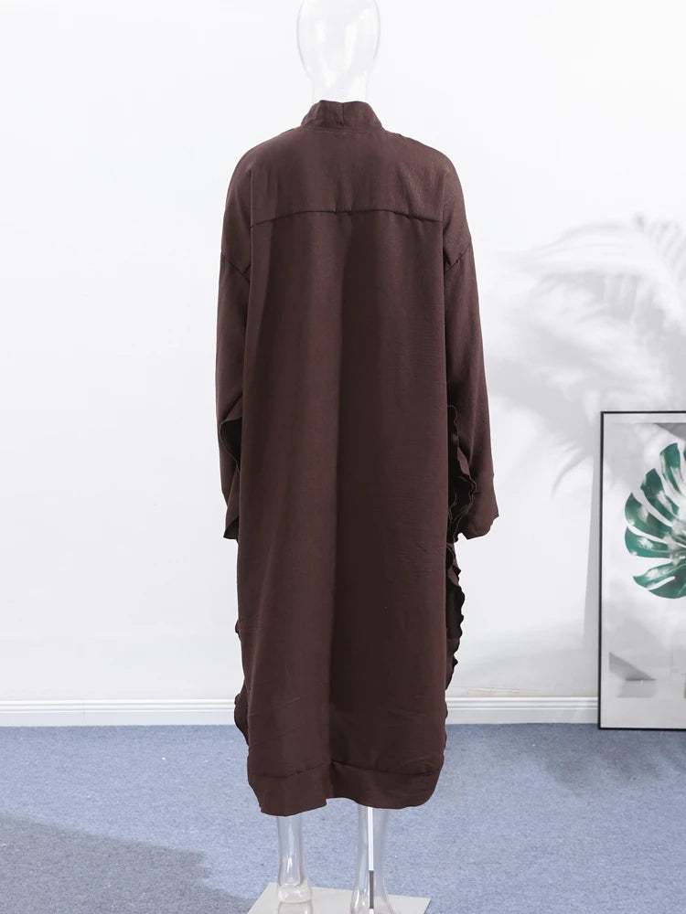 The Elegant Ruffle Hem Dress is a graceful piece designed to bring a touch of timeless sophistication to your wardrobe. Crafted with flowing fabric that drapes beautifully, this dress features a flattering silhouette that balances elegance with comfort. The ruffle hem detail adds a playful yet refined finish, giving the dress a sense of movement and charm with every step.