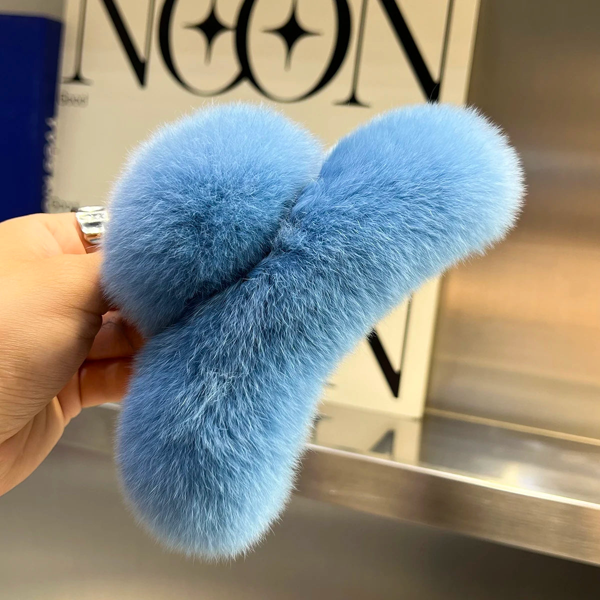 Add a touch of cozy elegance to your look with this fluffy rabbit fur hair claw. Designed with soft, natural Rex rabbit fur and a sturdy plastic clip, this fashionable accessory combines warmth with style. Perfect for casual days, shopping trips, or evening parties, it keeps your hairstyle secure while adding a chic, winter-ready charm.