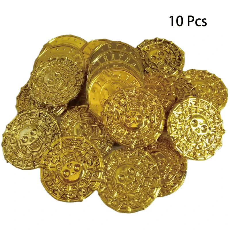 Bring treasure hunt fun to your party with these plastic pirate gold coins. Lightweight and reusable, they’re great for Halloween games, party favors, or themed decorations. Their shiny finish makes them a playful addition to pirate adventures, birthday parties, and festive events.