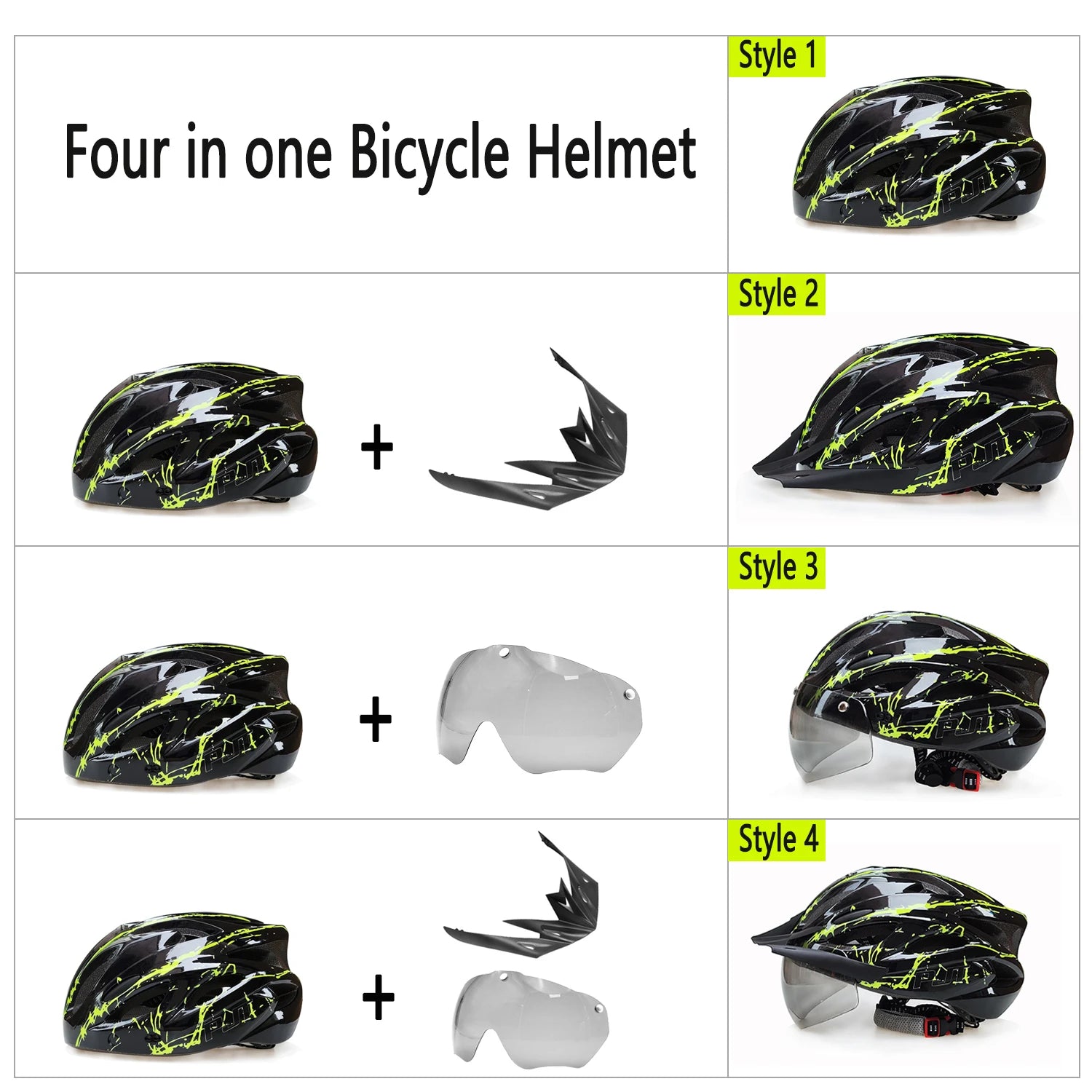 This 4-in-1 integrally molded cycling helmet is designed for safety, comfort, and versatility. With 18 breathable air vents, a detachable sun visor, and built-in goggles, it provides excellent airflow, sun protection, and clear vision. Ideal for road cycling, MTB, and daily commutes, it ensures lightweight yet durable head protection for adult riders.