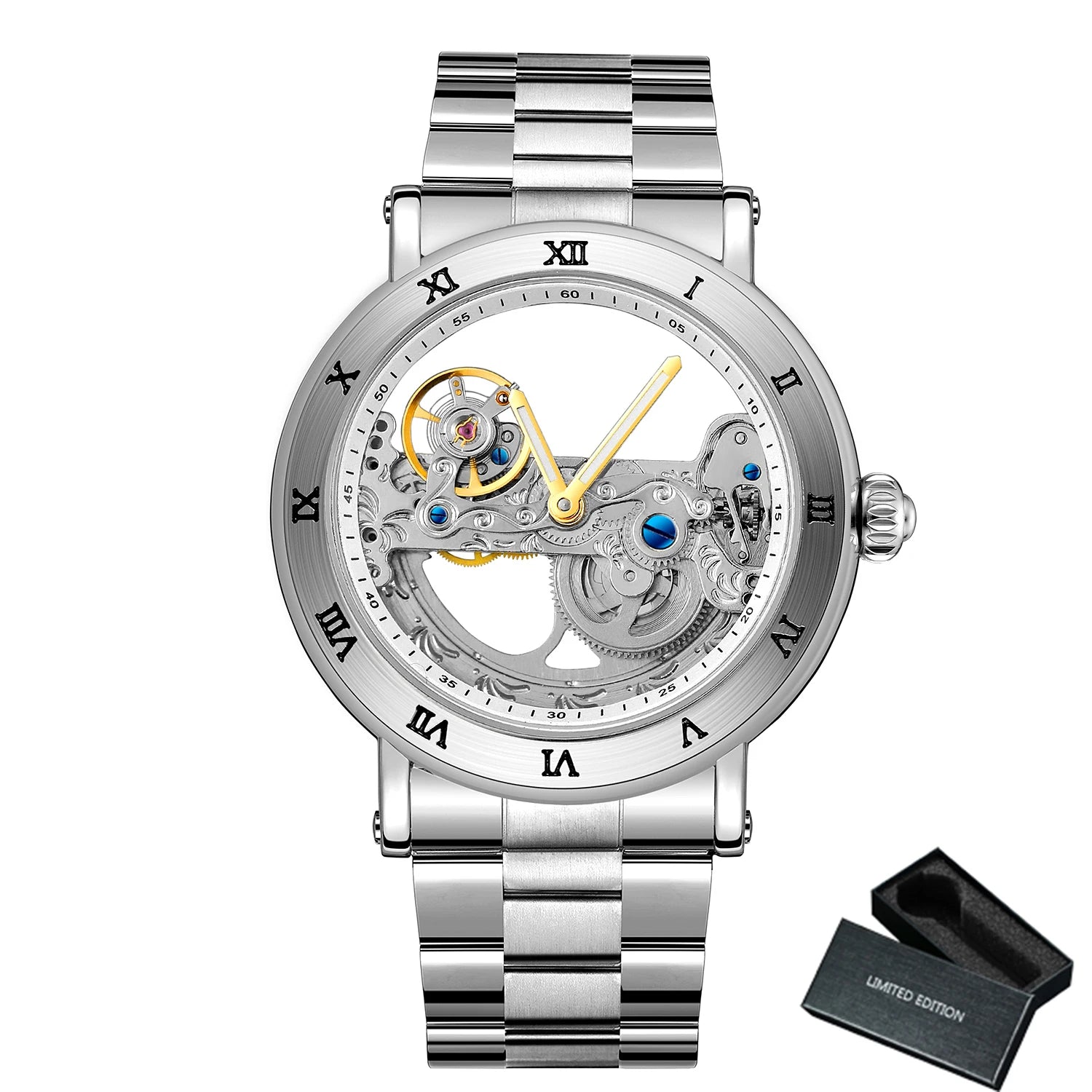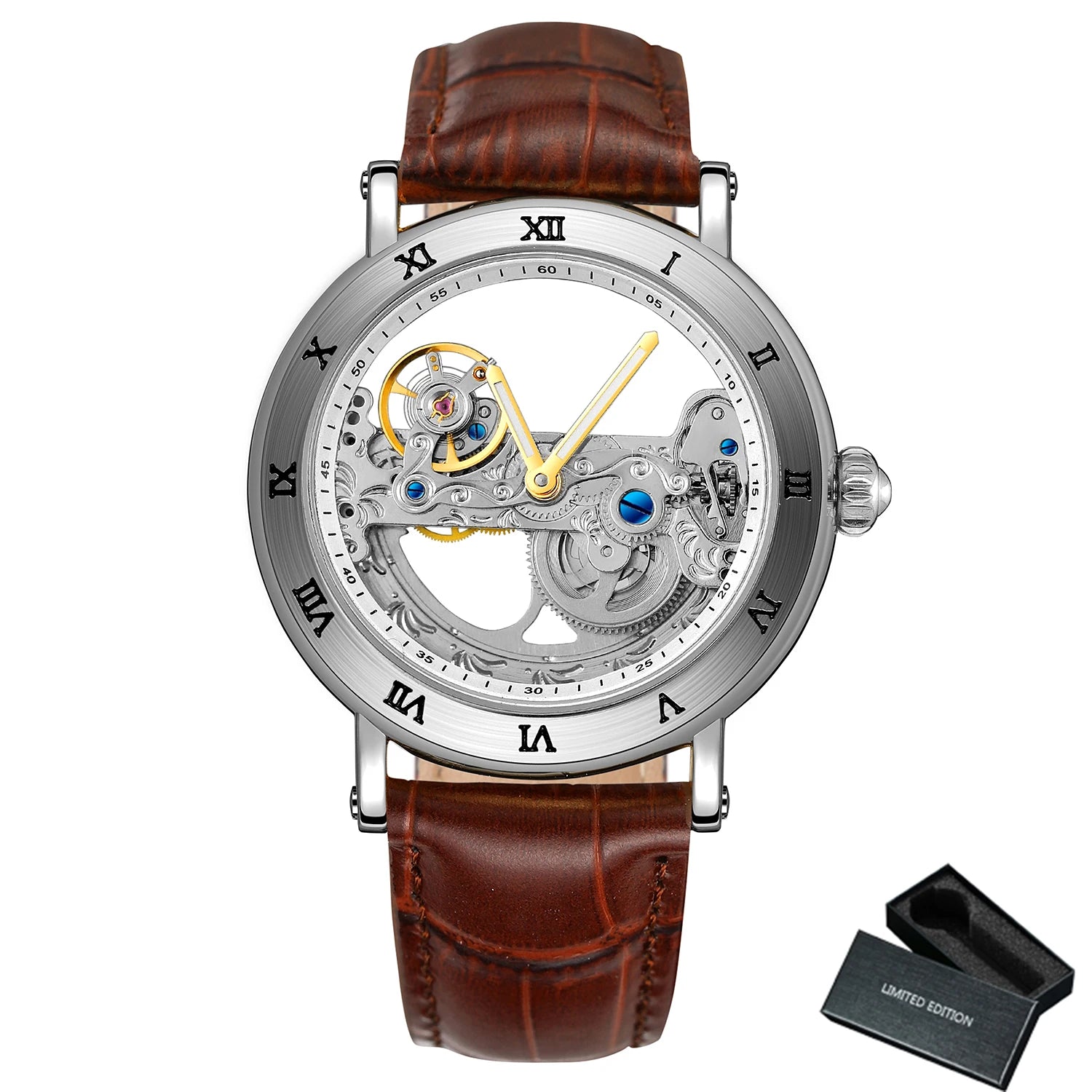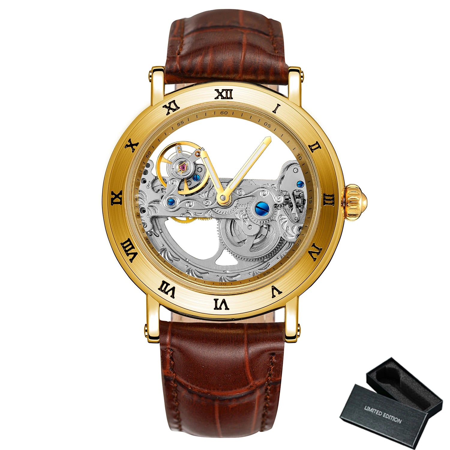 Elevate your style with this luxury men’s mechanical wristwatch, combining fashion and casual design. Featuring an automatic self-wind movement, leather or stainless steel strap options, and a classic Roman numeral display, this watch is perfect for daily wear or special occasions.