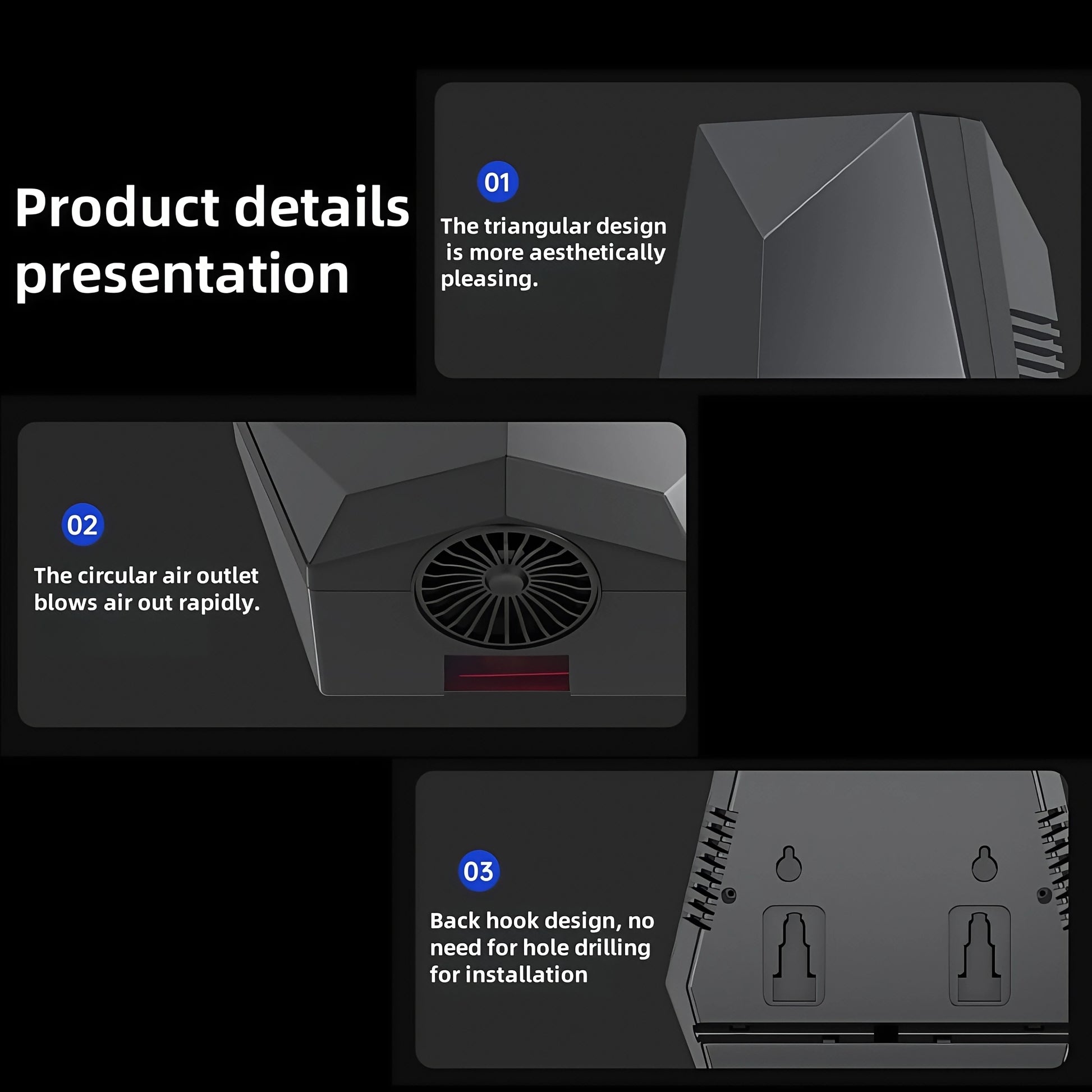 Keep restrooms clean and hygienic with this mini fully automatic hand dryer. Featuring high-speed warm air and an induction sensor, it delivers fast, touch-free drying for efficient and convenient use in commercial or public spaces. Its compact design makes it ideal for modern bathrooms while maintaining strong performance.