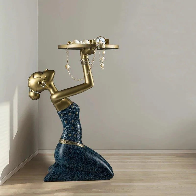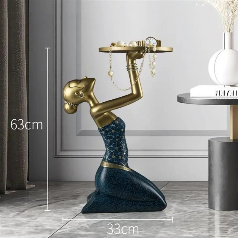 The Resin Kneeling Girl Figurine with Storage Tray is a modern art sculpture that combines decorative elegance with practical functionality. Featuring a Nordic-inspired design, this resin statue doubles as a stylish tray stand, making it perfect for living rooms, bedrooms, entryways, and more. With its unique kneeling figure and 30cm tray, it serves as both an artistic centerpiece and a practical storage solution.