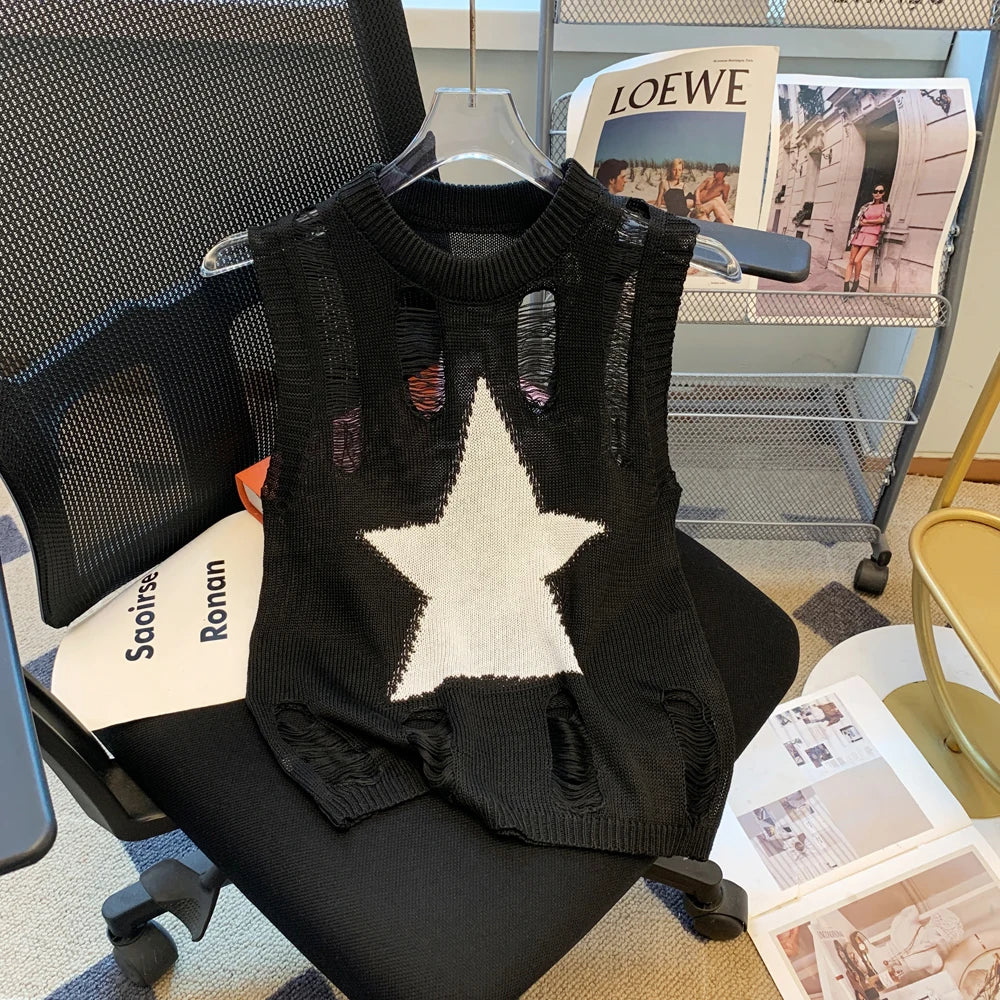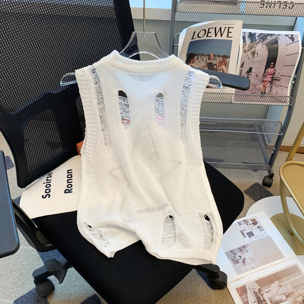 The Sleeveless Hollow Knit Tank is a bold yet versatile piece designed for women who love style with comfort. Its lightweight knit fabric features delicate hollow-out detailing that adds a touch of allure while allowing breathability for warm weather wear. The sleeveless design and relaxed fit make it easy to layer over bralettes, bandeaus, or wear solo for a confident statement look.