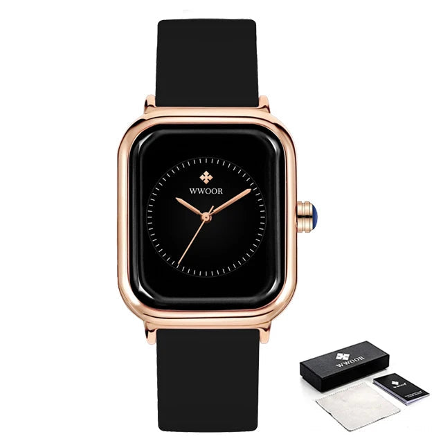Women’s Luxury Square Quartz Watch with Silicone Band