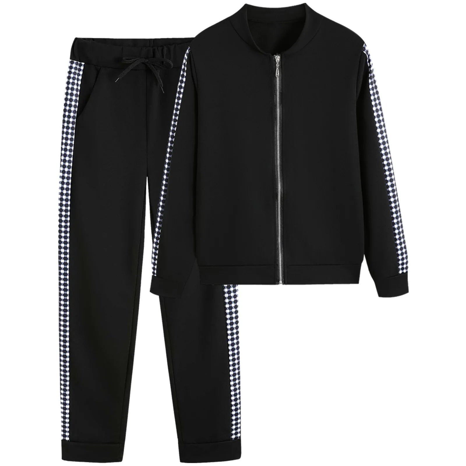 Stay comfortable and fashionable with this casual two-piece tracksuit set. Featuring a zip-up sweatshirt and matching trousers, it is designed with a relaxed fit and solid color style for everyday wear. Made from soft polyester and spandex, this set is perfect for autumn and winter streetwear, casual outings, or leisure activities.
